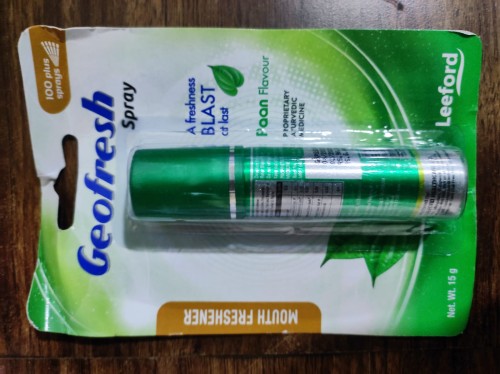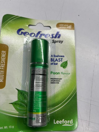 Geofresh Mouth Freshener Spray is an instant mouth freshener that helps to provide complete freedom from bad breath & food smell immediately after eating due to dietary, lifestyle & medical reasons. Geofresh mouth spray helps you to prepare yourself instantly for a sales call, business meeting, date & the intimate moments. Geofresh Mouth Freshener Spray masks the smell of alcohol, smoker & tobacco chewers too.
