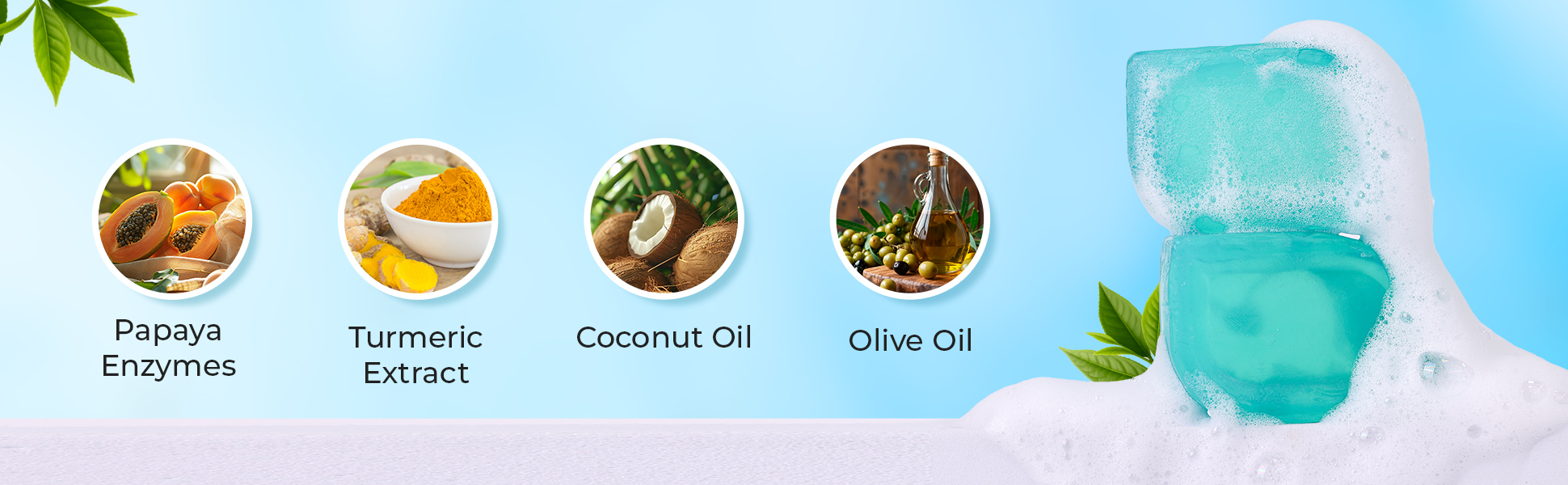 A skin-brightening soap infused with turmeric, papaya, and olive oil, leaving skin soft, smooth, and glowing.
