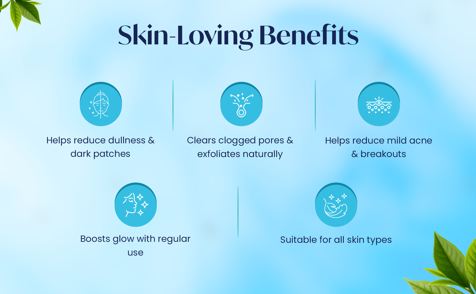 Improves skin health & texture of the skin. Clears dull & dead skin cells along with pollutants. Makes skin clean, clear & germ free.