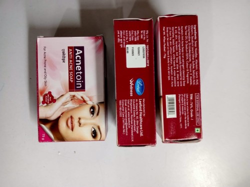 Acnetoin Anti Acne Soap clears all dirt and oil. It nourishes the skin all day long. Makes skin soft , smooth and germ free.