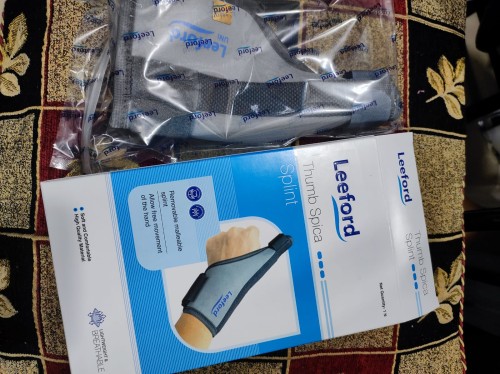 Leeford Thumb Spica Splint is a convenient device designed to immobilize the thumb in the abduction position. Support the CMC joint and immobilize the MCP joint of the thumb inhibiting movement. Made out of flexible breathable three-layered fabric with sandwiched PU foam contoured to provide close fitting over the thumb. Semi-rigid, removable malleable radial splint supports the thumb in the abduction and immobilized the Carpo metacarpo and, etacarpal joints of the thumb. Velcro closures ensure a quick and easy application and removal, of the product and closed contoured fitting of the splint around the thumb.